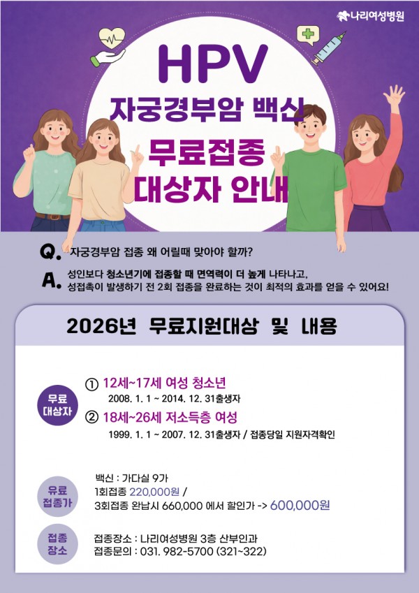 접종 장소: 나리여성병원 3층 산부인과