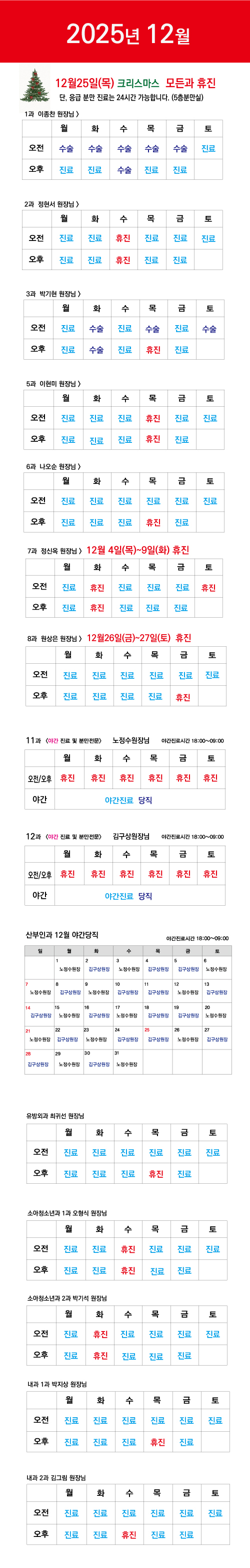 아래 12월 진료 일정을 확인하시고 편안하게 방문해 주세요.