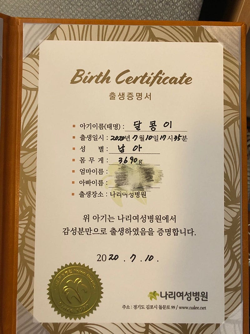 저희 아기가 태어나고 처음으로 받는 증명서라 소중히 간직해서 아기가 크면 보여주려구요!